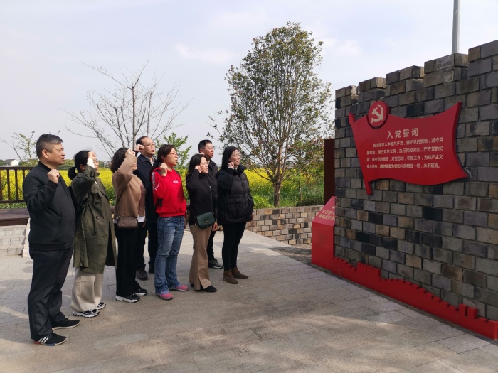 在塘马村,全体人员来到“党员教育实境课堂”——“江南新四军十六旅旅部旧址”,旧址采用了情景再现:指挥桌上铺着作战地图、摆放着水杯和油灯、墙上挂着军用挎包和水壶、门口堆着沙袋搭建的战斗工事,这些实物展陈和相关图片资料仿佛把大家带回了“塘马战斗”的硝烟中;在“塘马战斗纪念广场”,支部书记洪秋妹带领全体党员同志重温了入党誓词,更加坚定了入党初心,牢记了奋斗使命。随后,全体人员参观了塘马村整洁的村落、平坦的道路和“乡村振兴学堂”。塘马村家家门前屋后花草点缀,原汁原味的田园风貌与曾经的硝烟烽火形成了鲜明的对比,更让大家深切体会到中国共产党带领人民进行中国特色社会主义建设所带来的生活变化。