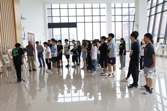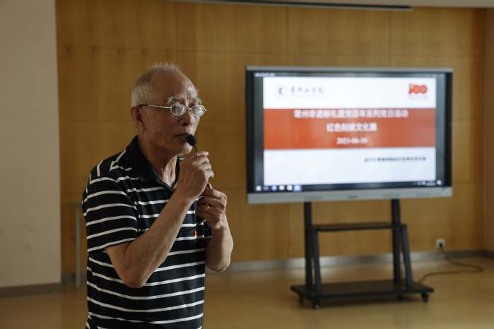 殷明欣介绍了他的刻纸艺术人生和此次作品的创作背景。文化艺术中心A区二楼大厅展出了其创作的82幅“廉洁文化”、“抗击疫情”、“建党百年”等系列刻纸作品,殷明欣向在场师生讲述每幅刻纸的创作动机和党史故事。