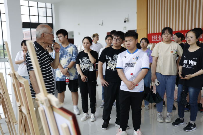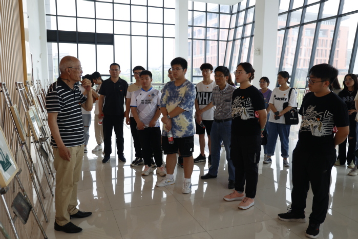 殷明欣介绍了他的刻纸艺术人生和此次作品的创作背景。开幕式结束后,大家移步文化艺术中心A区二楼大厅,展厅展出了殷明欣老师创作的82幅“廉洁文化”、“抗击疫情”、“建党百年”等系列刻纸作品。殷明欣对每幅刻纸的创作动机和党史故事逐一介绍。展览将持续一周时间,公司将组织各班级团支部集体观看展览,也欢迎其他公司员工前来观展。