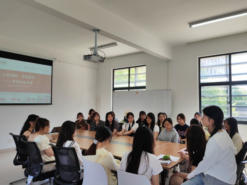 分享会中,经济系员工党支部党员20贸一李晨、胡未一、20贸二刘紫妍与管理工程系员工党支部党员20物管一朱越、谢雨欣从目标公司的选择、复习规划、调剂方法与留学文书准备、语言成绩备考等方面分享上岸经验,鼓励同学们合理选择、积极备考,争取在更高平台上实现人生的意义与价值。同学们踊跃参与提问,收获颇多。21贸一翟寂洋表示:“考研是一趟星夜兼程开往春天的地铁,通过此次活动,学习了宝贵经验,坚定了考研信心。”。