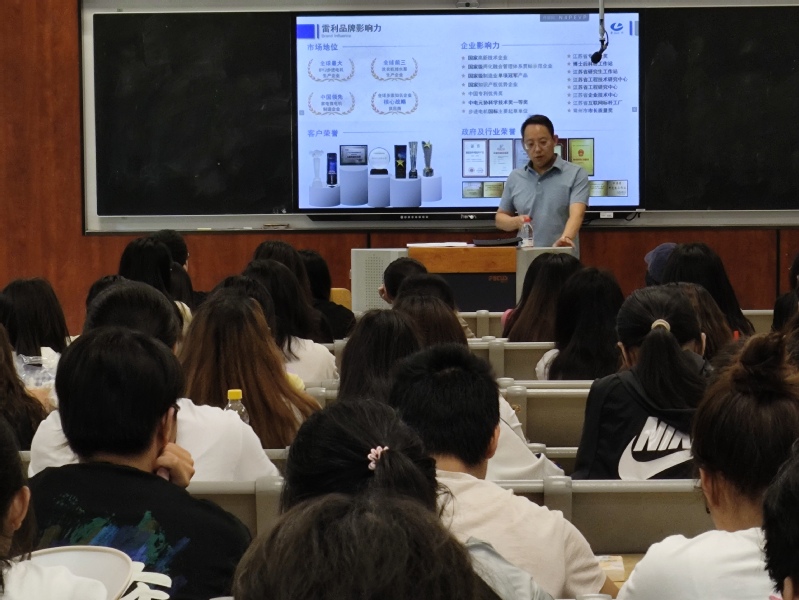 在讲座中,殷成龙首先介绍了自身求学和财务工作经历;其次着重讲述了雷利集团股份有限公司财务工作的特色;接着畅谈了对未来财务工作的构想,并推荐了适合财务管理专业阅读的专业书籍。