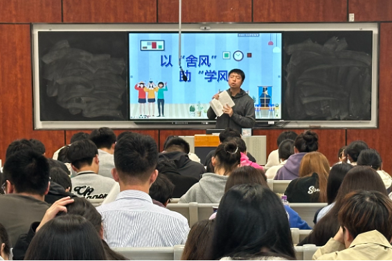 钱心怡从宿舍内务、安全教育、生活纪律和“示范寝室”创建等多方面进行了详细介绍,并通过身边案例,重点强调了校园防诈的重要性,提醒大家提高警惕,防范各类诈骗行为,保护好生命财产安全。同时,鼓励新生积极参与社区活动,创建“示范寝室”,达到以“舍风”助“学风”的目标。