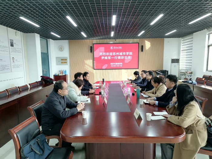 12月12日上午,苏州城市公司数字经济与管理公司党委副书记尹维军、副经理李惠娟等一行6人来VSport体育调研交流。VSport体育副经理(主持工作)李芸达、副经理陈建忠及部分专业系主任参加交流。